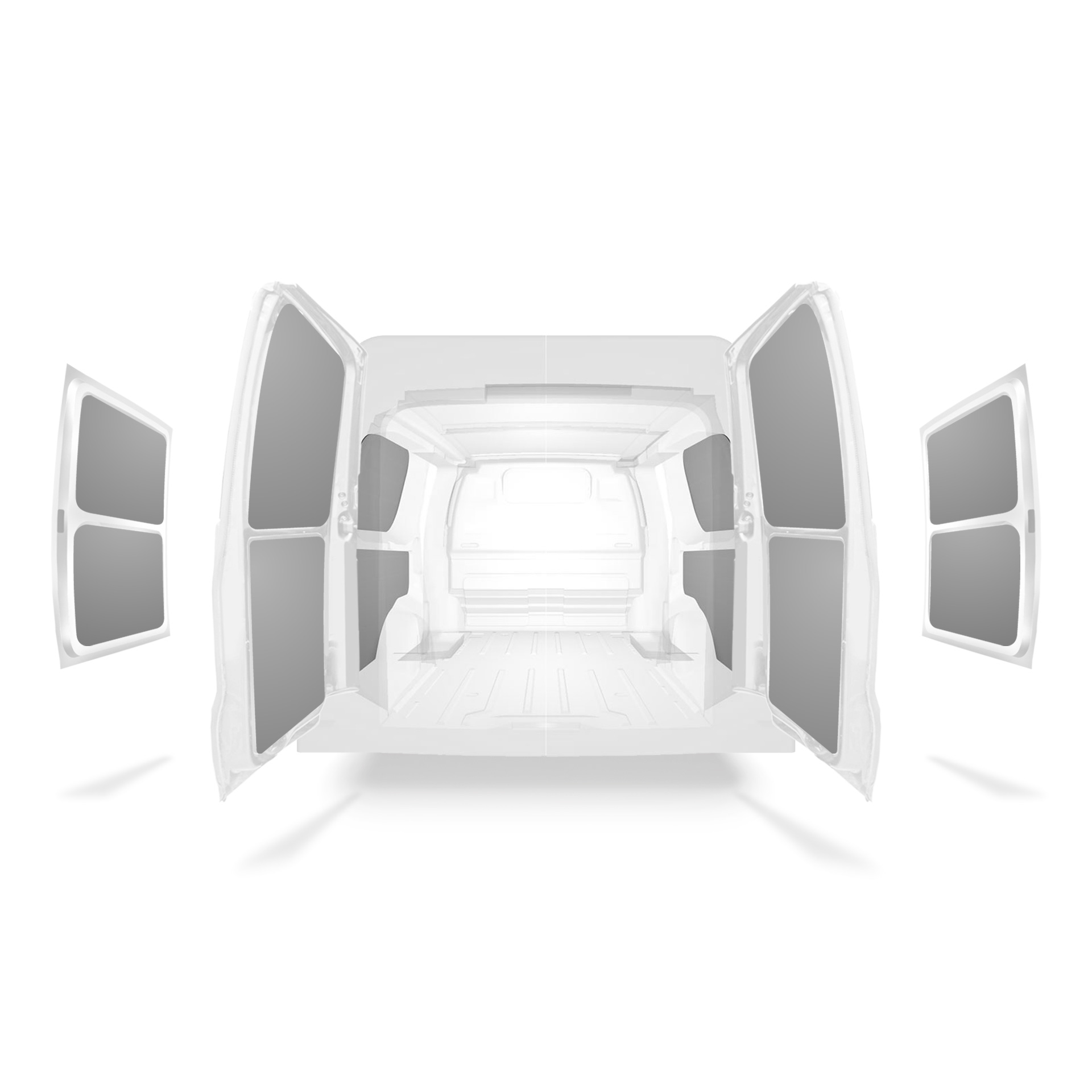 Legg merke til at monteringsmaterialet, som følger med hvert sett, er beregnet for karosserimontering. Braketter for montering i gulv- og veggskinner uten boring leveres separat.