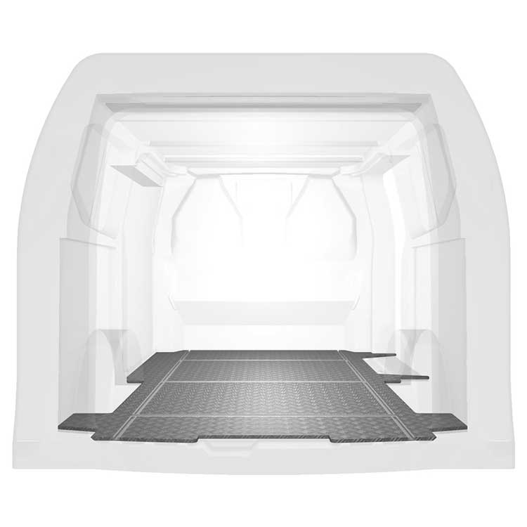 Våre lette og robuste gulv med tverrskinner fås til en rekke bilmodeller, og leveres med sklisikre aluminiumtråplater og lasteskinner (langsgående og tversgående) for rask og sikker montering av hyllesystemer og annet tilbehør. Gulvinstallasjonen krever ingen boring og monteres med lim med høy vedheft som er sterkere enn muttere og bolter og som beskytter restverdien av kjøretøyet.