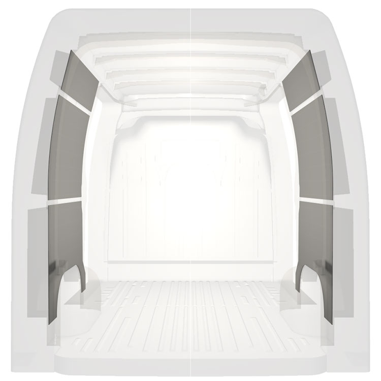 Våre lette panelkledninger til varebiler gir et lyst og behagelig arbeidsmiljø, og er lette å tørke rene. For å optimalisere vekten, leverer vi forhåndsskårne kledninger som passer mellom bjelkene i bilen, slik at de ikke kommer i veien og gir maksimal plass. Alternativt leveres også heldekkende panelkledninger.