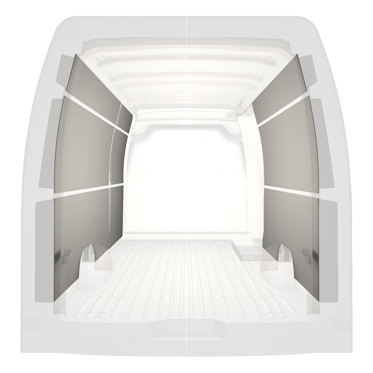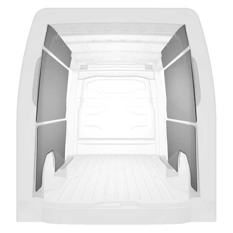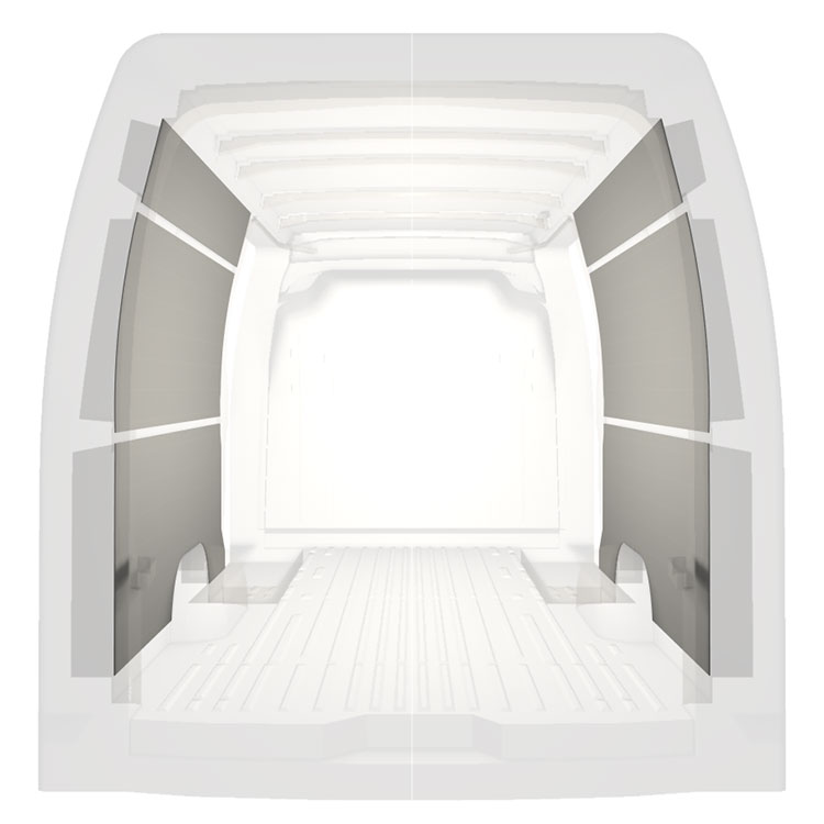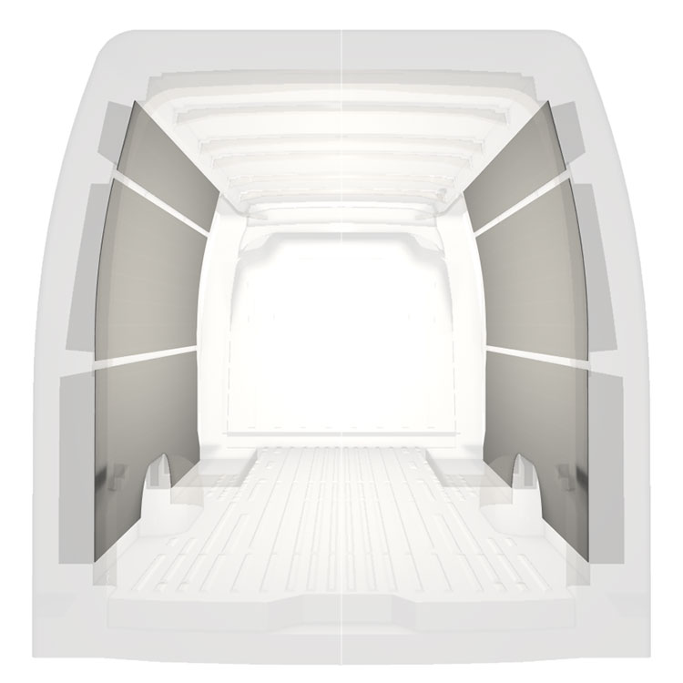 Våre lette panelkledninger til varebiler gir et lyst og behagelig arbeidsmiljø, og er lette å tørke rene. For å optimalisere vekten, leverer vi forhåndsskårne kledninger som passer mellom bjelkene i bilen, slik at de ikke kommer i veien og gir maksimal plass. Alternativt leveres også heldekkende panelkledninger.