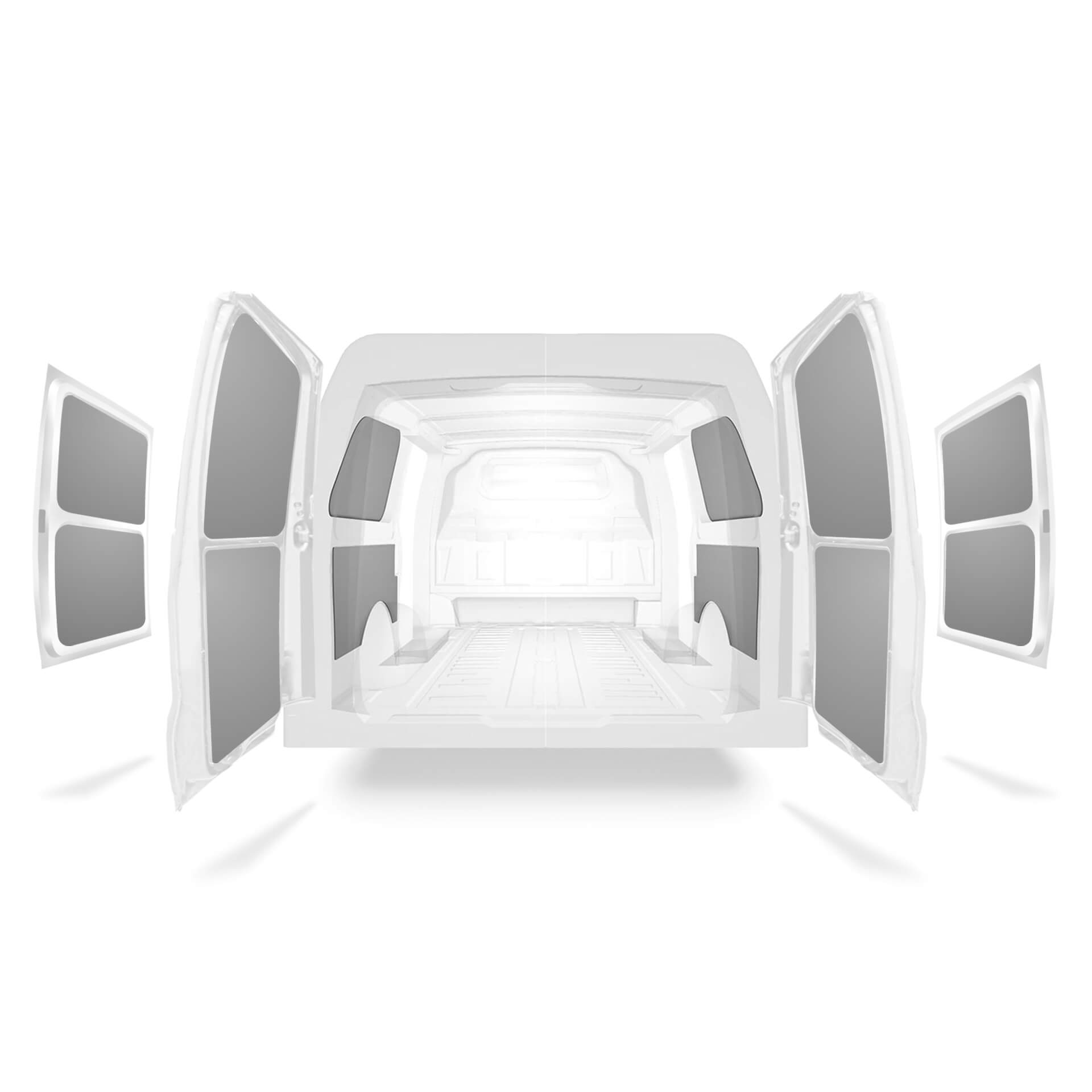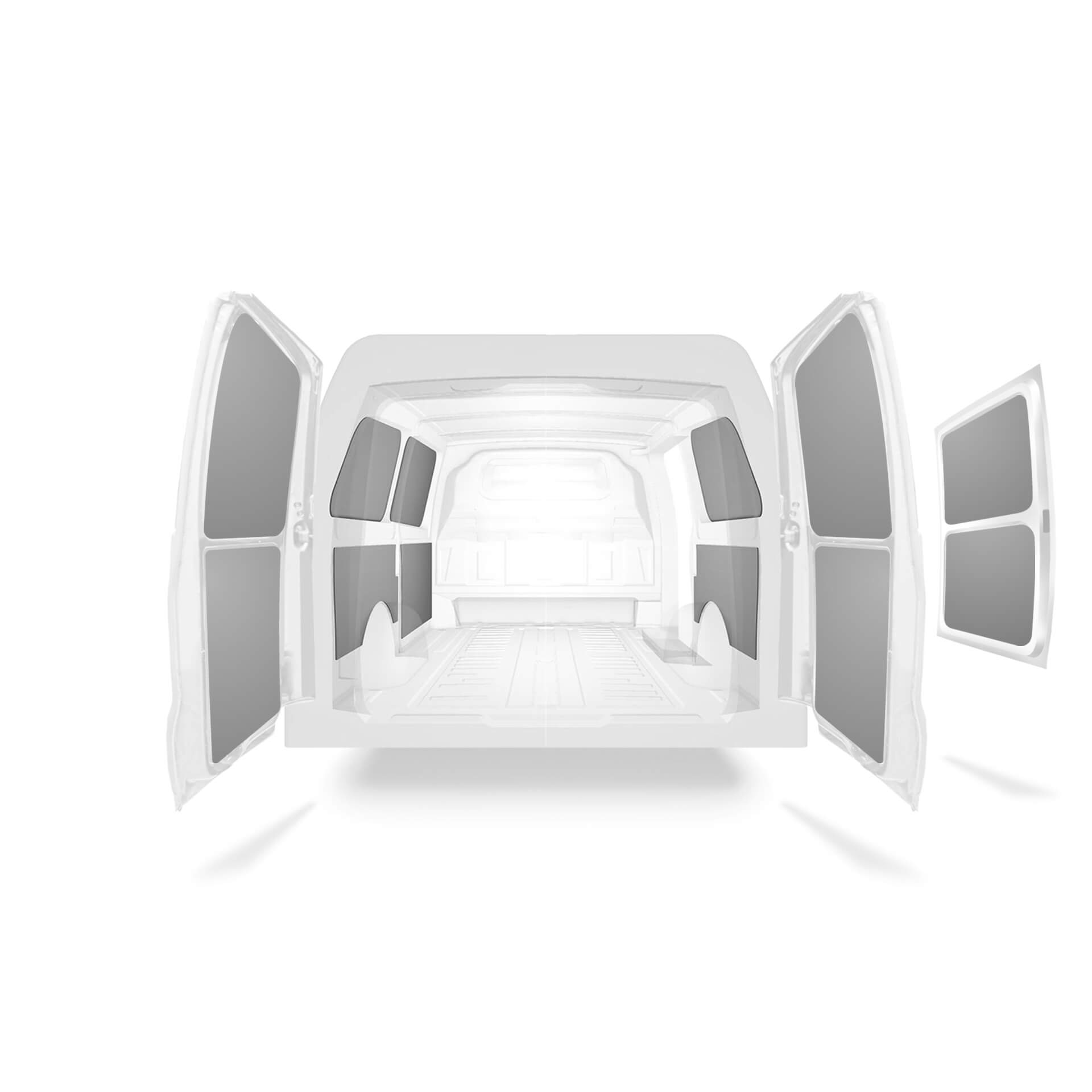 Legg merke til at monteringsmaterialet, som følger med hvert sett, er beregnet for karosserimontering. Braketter for montering i gulv- og veggskinner uten boring leveres separat.