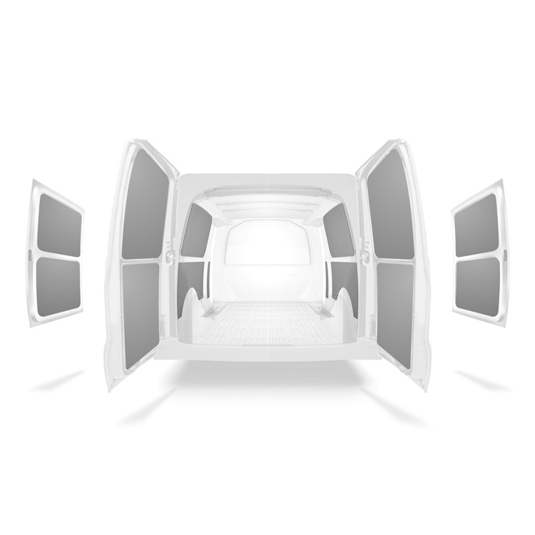 Legg merke til at monteringsmaterialet, som følger med hvert sett, er beregnet for karosserimontering. Braketter for montering i gulv- og veggskinner uten boring leveres separat.