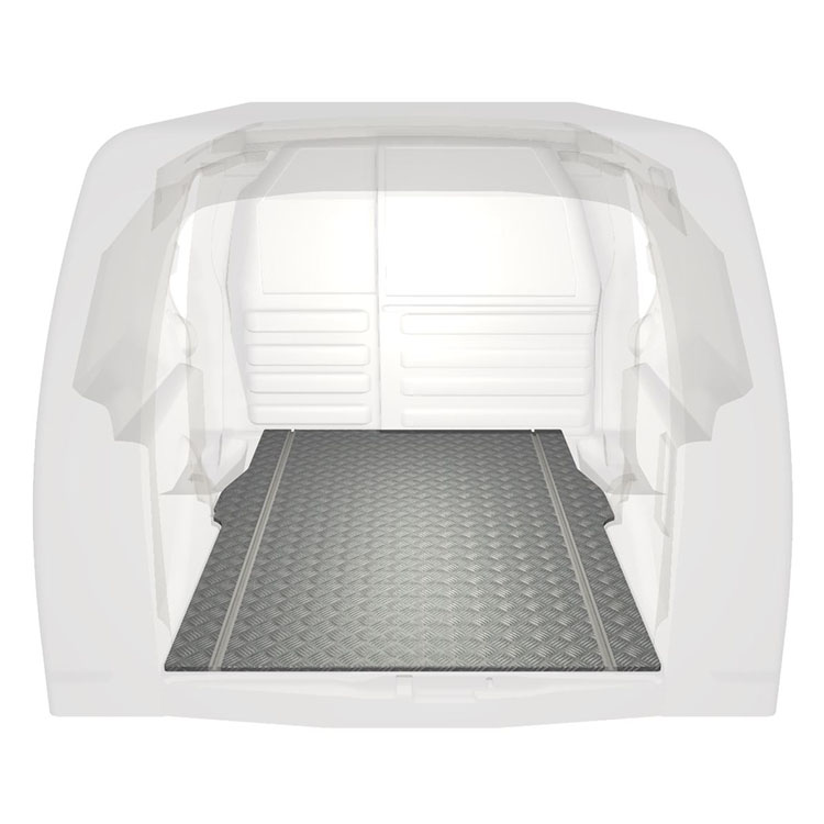 Lett og robust ekstra langt gulv til Citroën Berlingo / Peugeot Partner med sklisikker tråplate i aluminium og lastskinner (langsgående) for rask og sikker installasjon av hyllesystemer og annet tilbehør.