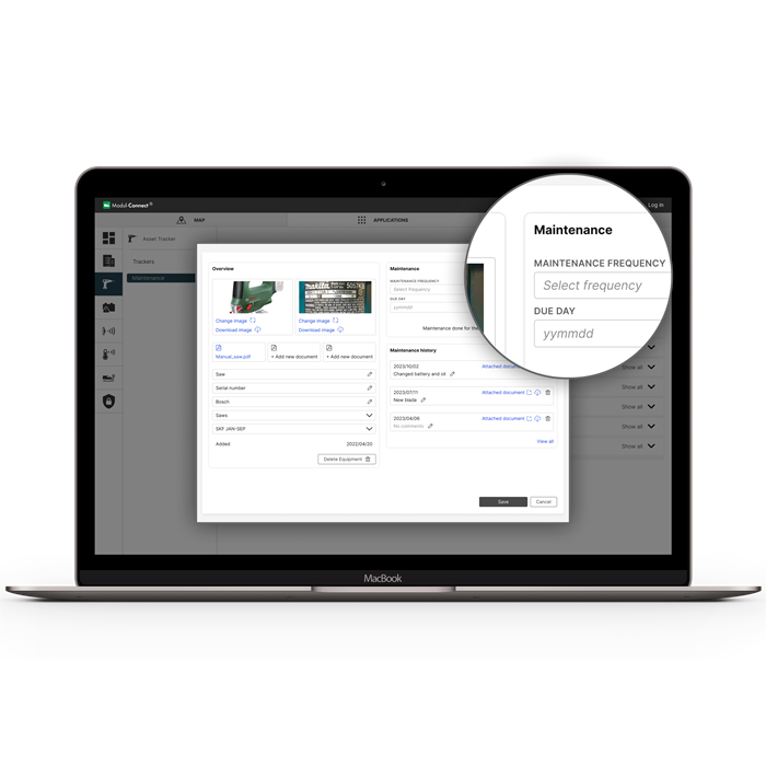 In the Customer Portal, you can immediately see if a vehicle has misplaced a tool and which tools are linked to which vehicle. Add maintenance for both tracked tools and tools/equipment without trackers. All information – including ID numbers, images, and maintenance data – is available and easy to access in the portal, giving you full control and overview.
