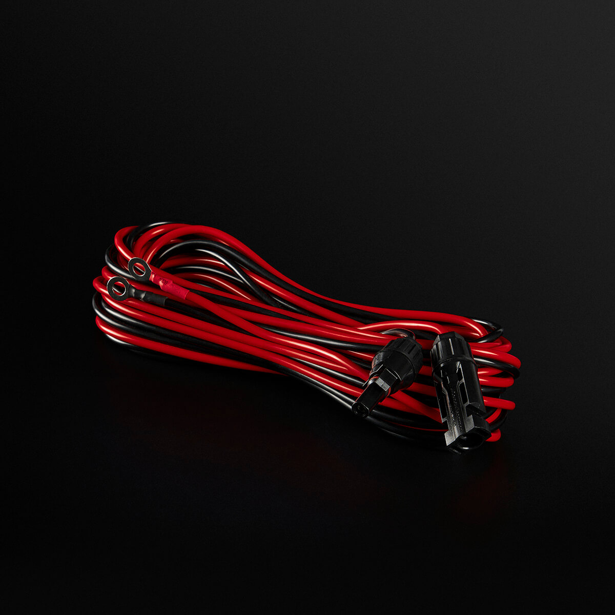 Power cables for 28500-03 Solar Panel flexible 210W with MC4 connectors and M8 ring terminals for easy connection to battery.