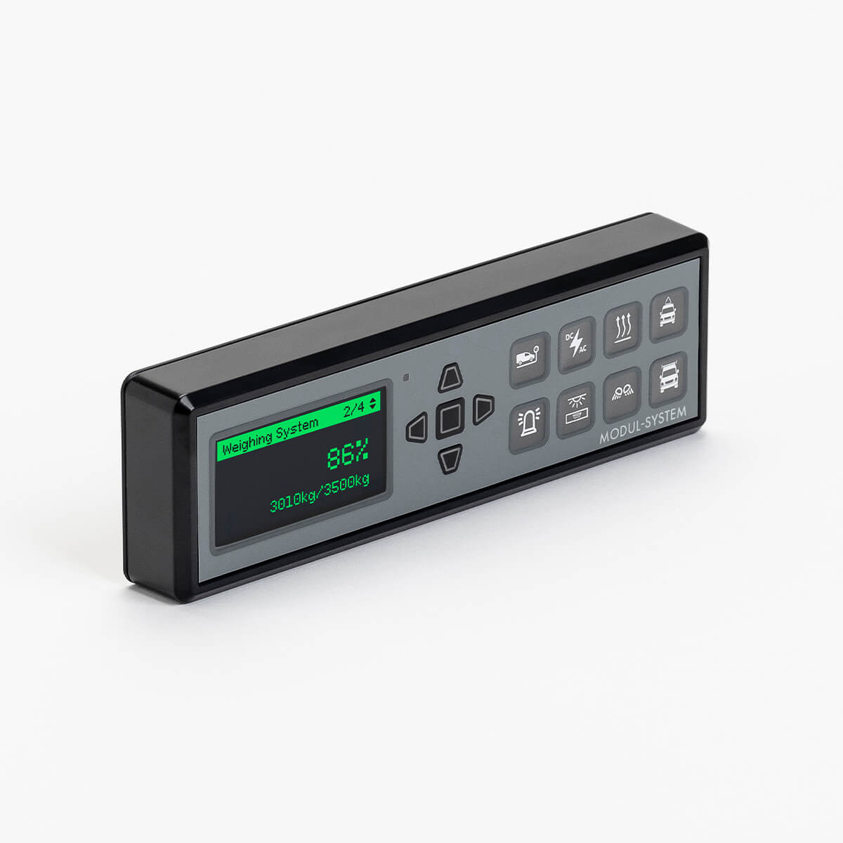 Bryterpanel med OLED skjerm designet til å passe inn i kupeen. Bak-opplyste brytere gjør det enkelt for bruker å se hvilket ekstra utstyr som er i bruk. Bryterpanelet er strømforsynt av bilens batteri og styres via Bluetooth®. Enkelt å montere ved bruk av Bluetooth® funksjonen, og monteres I bilen ved bruk av limputer.