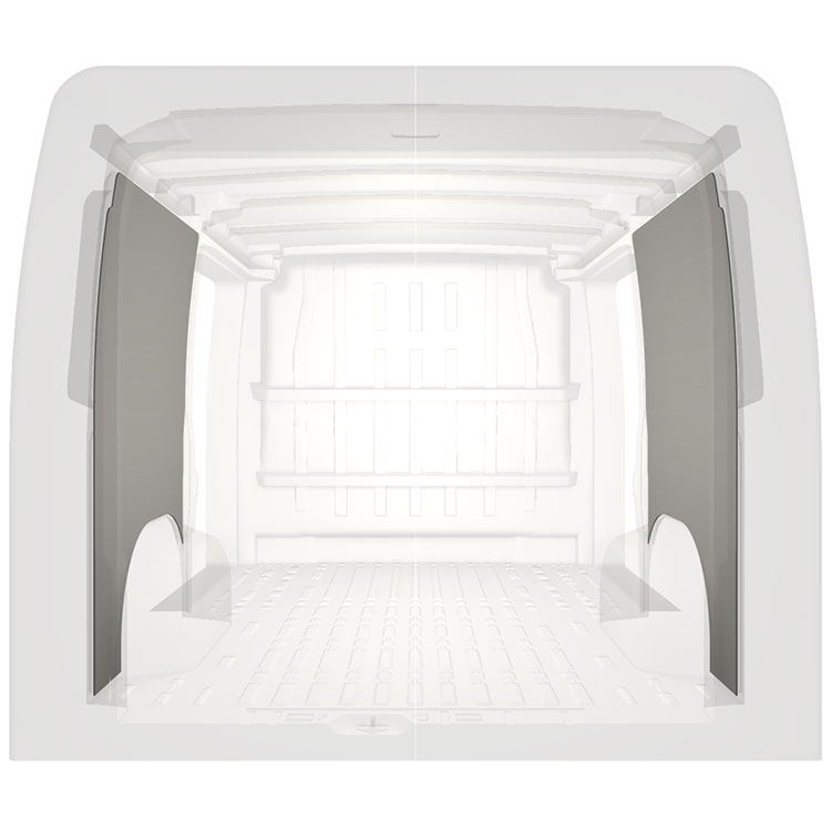 Lett full kledning til innerveggene i Citroën Jumper / Peugeot Boxer / Fiat Ducato med doble sidedører. Kledningen gir et lyst og trivelig arbeidsmiljø, og er enkel å tørke av.