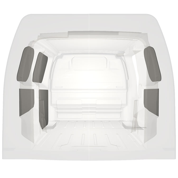 For å optimalisere vekten passer den prefabrikkerte varebilkledningen bare i rommet mellom bjelkene i kjøretøyet. På den måten er de ikke i veien og gir maksimalt med plass.