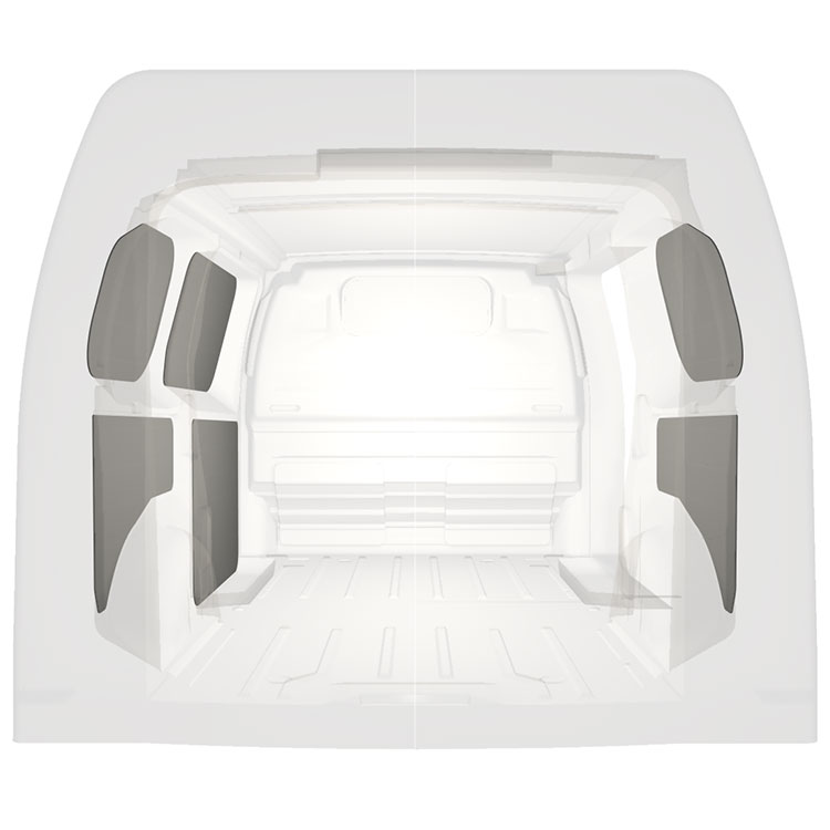 For å optimalisere vekten passer den prefabrikkerte varebilkledningen bare i rommet mellom bjelkene i kjøretøyet. På den måten er de ikke i veien og gir maksimalt med plass.