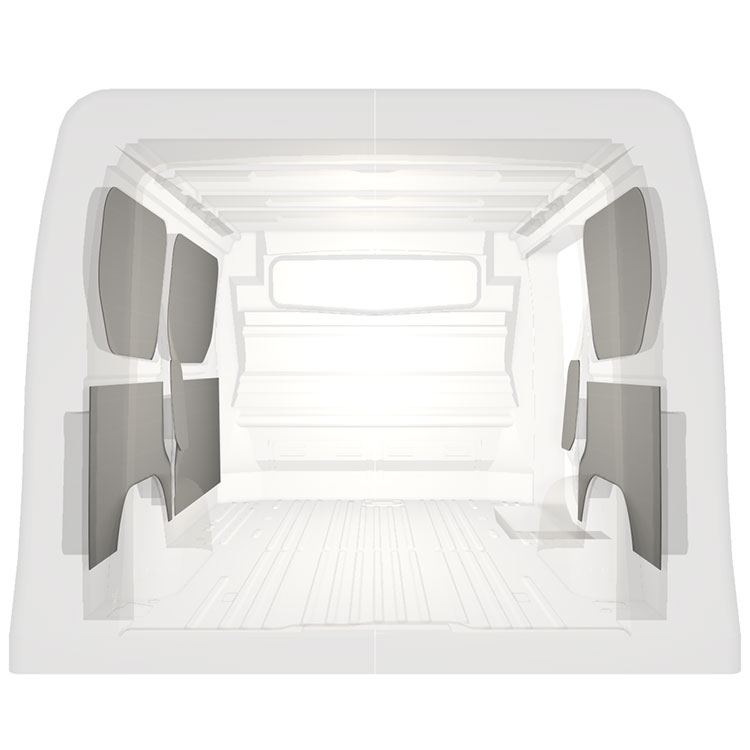 Lett panelkledning til innerveggene i Renault Trafic / Opel Vivaro / Fiat Talento / Nissan NV300 med høyre sidedør. Kledningen gir et lyst og trivelig arbeidsmiljø, og er enkel å tørke av.
