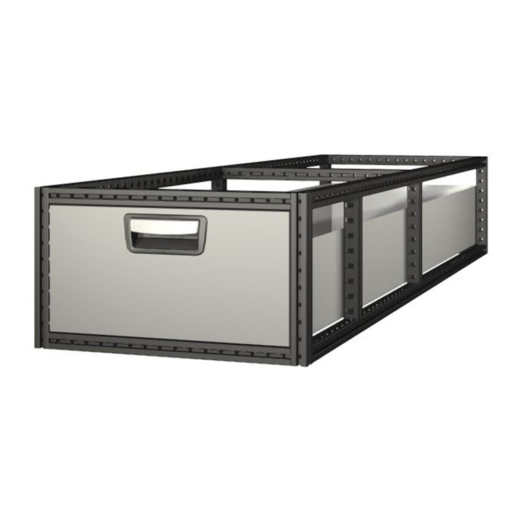 De ekstra lange skuffeenhetene har en ramme i ultrahøylegert stål og skuffer i aluminium. Skuffene er utrustet med kulelager som standard. Miksen av faste og rørlige lager gjør skuffen stabil og enkel å betjene.