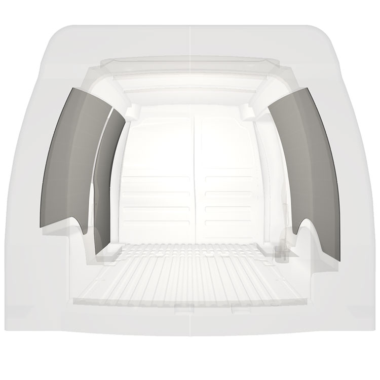 For å optimalisere vekten passer den prefabrikkerte varebilkledningen bare i rommet mellom bjelkene i kjøretøyet. På den måten er de ikke i veien og gir maksimalt med plass.