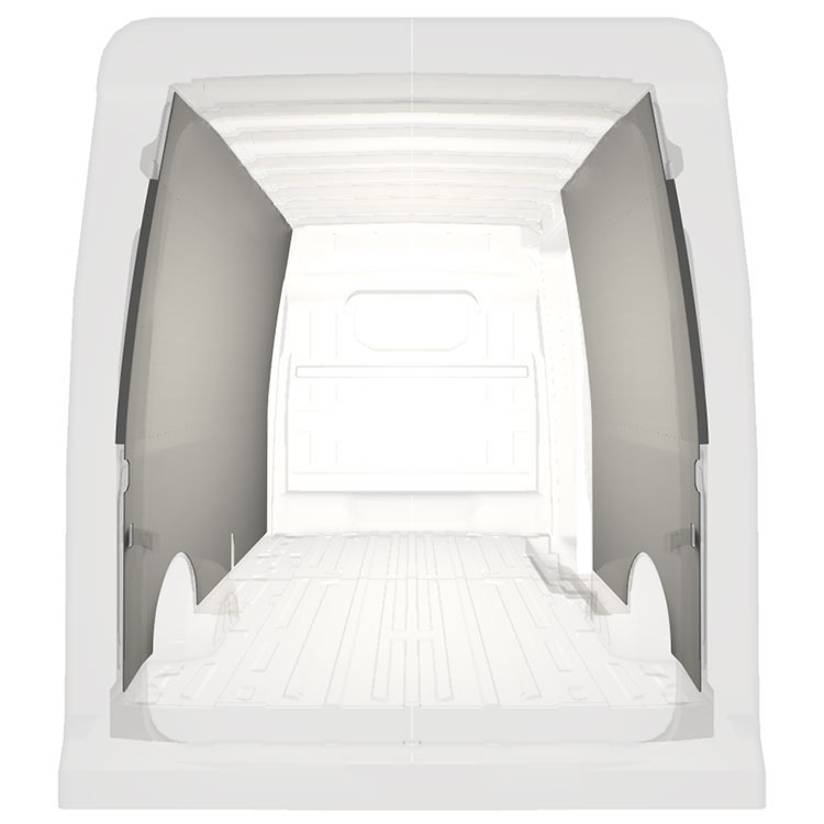 For å optimalisere vekten passer den prefabrikkerte varebilkledningen bare i rommet mellom bjelkene i kjøretøyet. På den måten er de ikke i veien og gir maksimalt med plass.