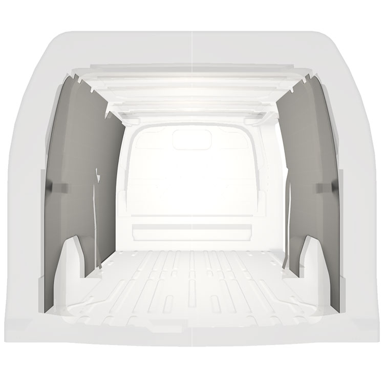 For å optimalisere vekten passer den prefabrikkerte varebilkledningen bare i rommet mellom bjelkene i kjøretøyet. På den måten er de ikke i veien og gir maksimalt med plass.