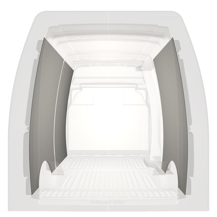 Lett full kledning til innerveggene i Iveco Daily med høyre sidedør.Kledningen gir et lyst og trivelig arbeidsmiljø, og er enkel å tørke av.
