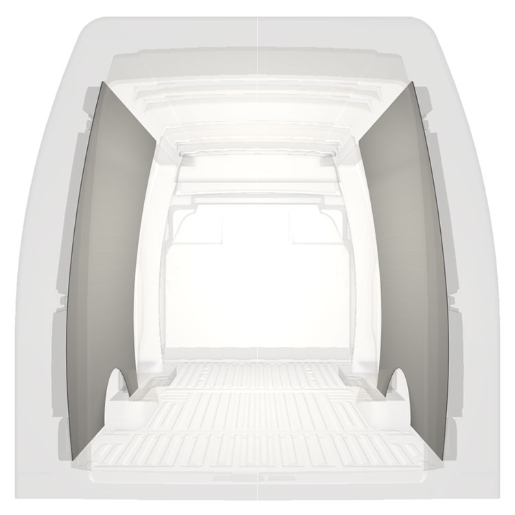 Lett full kledning til innerveggene i Iveco Daily med doble sidedører. Kledningen gir et lyst og trivelig arbeidsmiljø, og er enkel å tørke av.