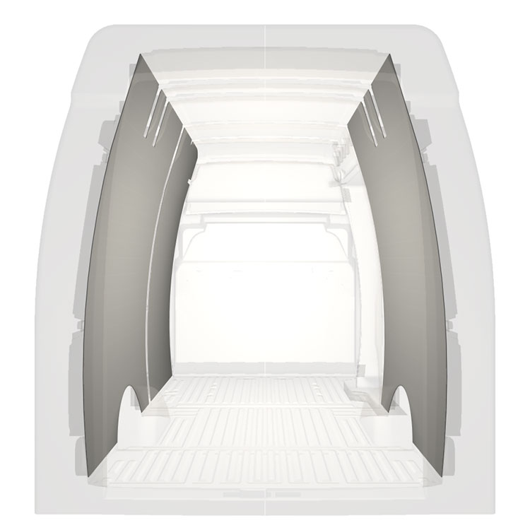 For å optimalisere vekten passer den prefabrikkerte varebilkledningen bare i rommet mellom bjelkene i kjøretøyet. På den måten er de ikke i veien og gir maksimalt med plass.