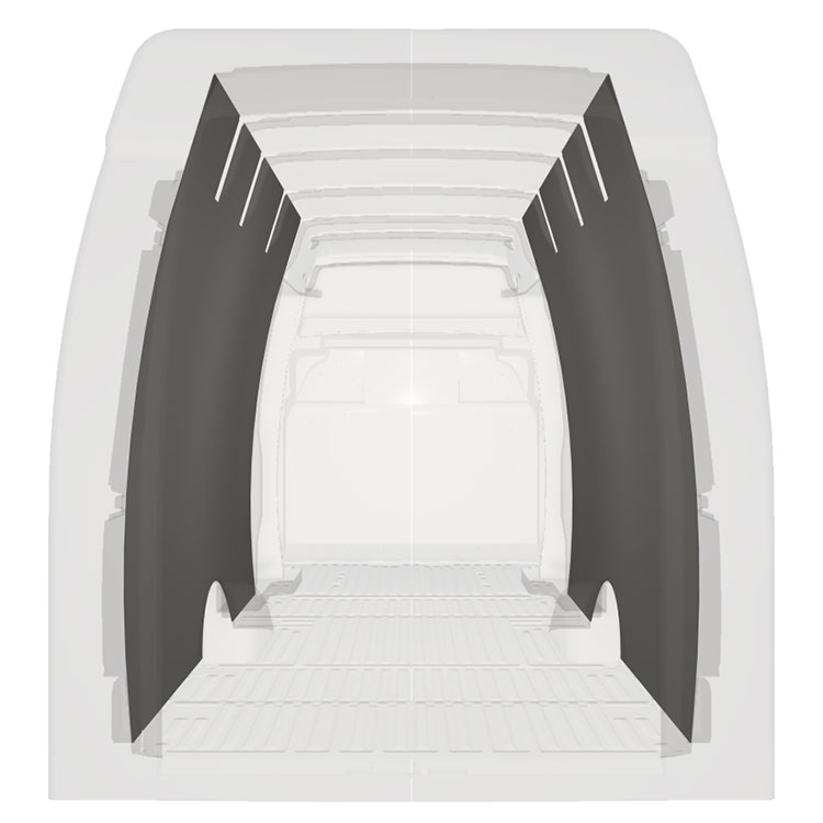 Lett full kledning til innerveggene i Iveco Daily med doble sidedører. Kledningen gir et lyst og trivelig arbeidsmiljø, og er enkel å tørke av.