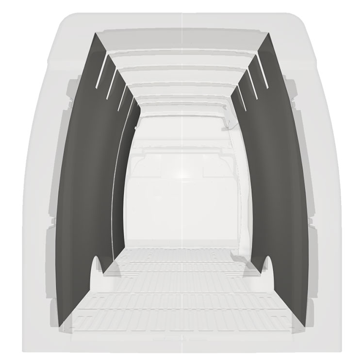 Lett full kledning til innerveggene i Iveco Daily med høyre sidedør.Kledningen gir et lyst og trivelig arbeidsmiljø, og er enkel å tørke av.