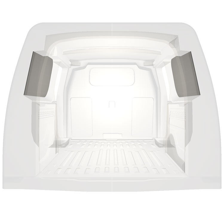 Lett prefabrikkertkledning til innerveggene i Berlingo/Partner/Combo 19- med doble sidedører. Kledningen gir et lyst og trivelig arbeidsmiljø, og er enkel å tørke av.