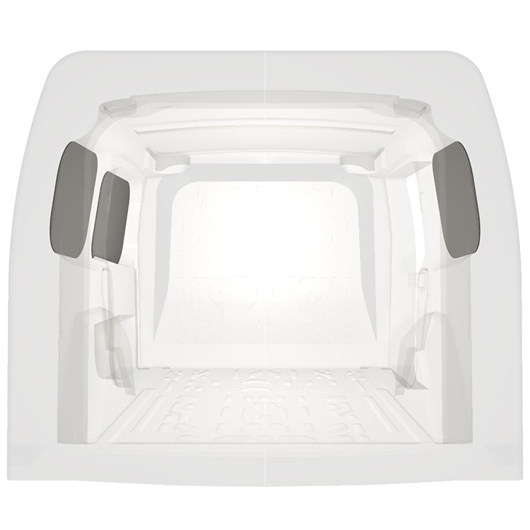 For å optimalisere vekten passer den prefabrikkerte varebilkledningen bare i rommet mellom bjelkene i kjøretøyet. På den måten er de ikke i veien og gir maksimalt med plass.