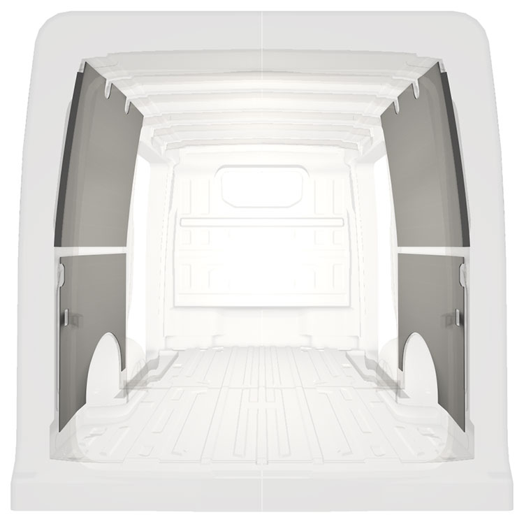 For å optimalisere vekten passer den prefabrikkerte varebilkledningen bare i rommet mellom bjelkene i kjøretøyet. På den måten er de ikke i veien og gir maksimalt med plass.