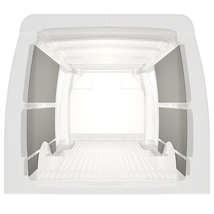 For å optimalisere vekten passer den prefabrikkerte varebilkledningen bare i rommet mellom bjelkene i kjøretøyet. På den måten er de ikke i veien og gir maksimalt med plass.