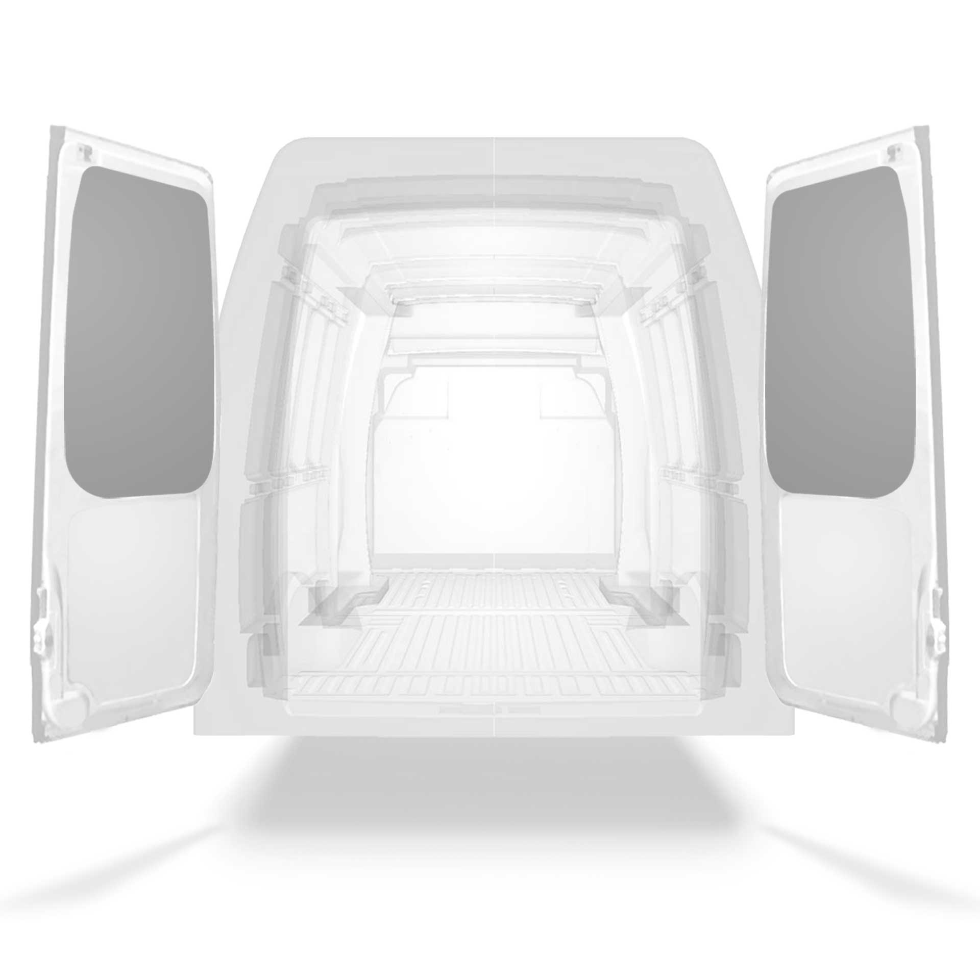 Lett øvre panelkledning til bakdør i Iveco Daily med dobbeltdører. Dørkledningen har en design som gir en profesjonell utførelse på innsiden, den beskytter varebilen og er enkel å tørke av.
