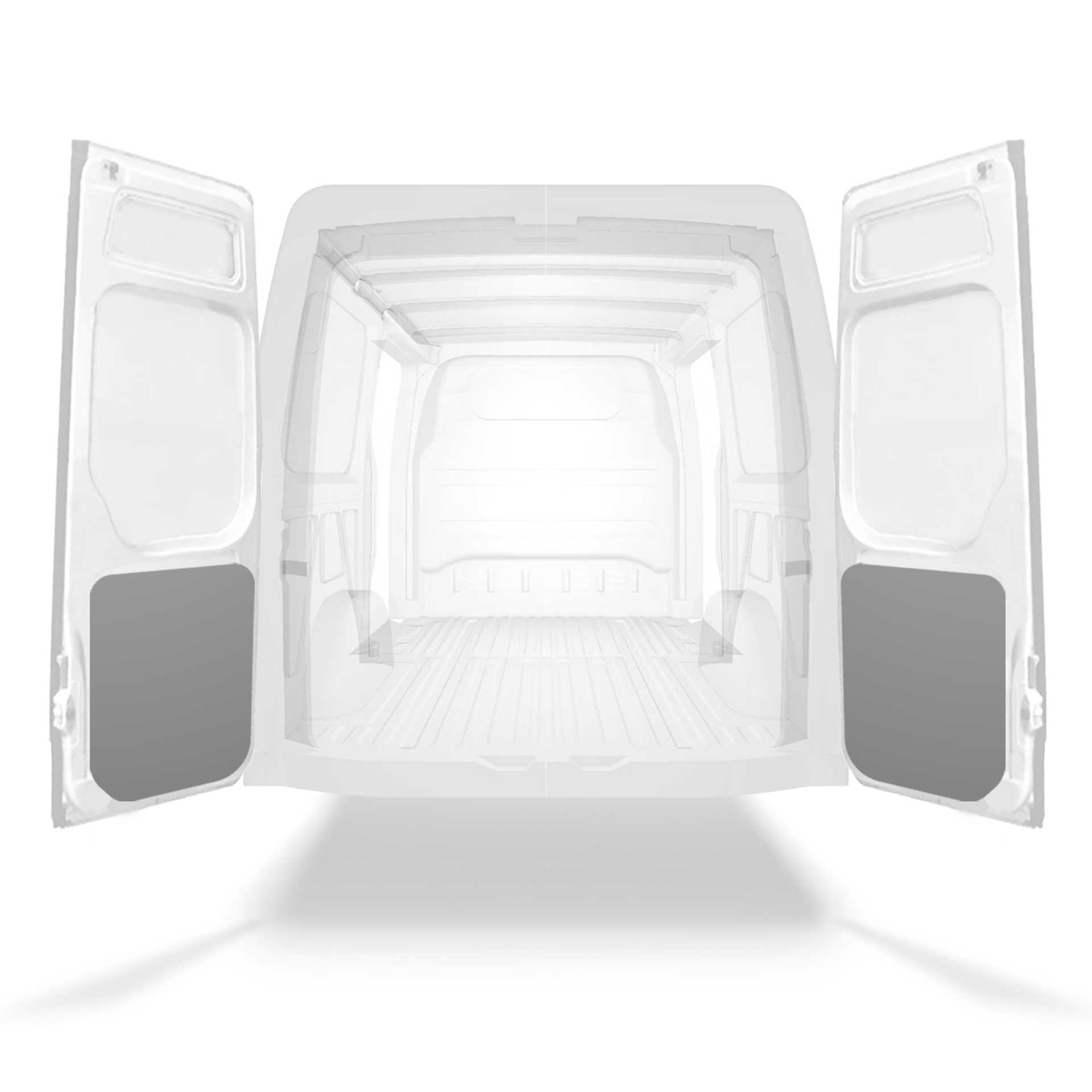 Lett nedre panelkledning til bakdør i Mercedes Sprinter med dobbeltdører. Dørkledningen har en design som gir en profesjonell utførelse på innsiden, den beskytter varebilen og er enkel å tørke av.
