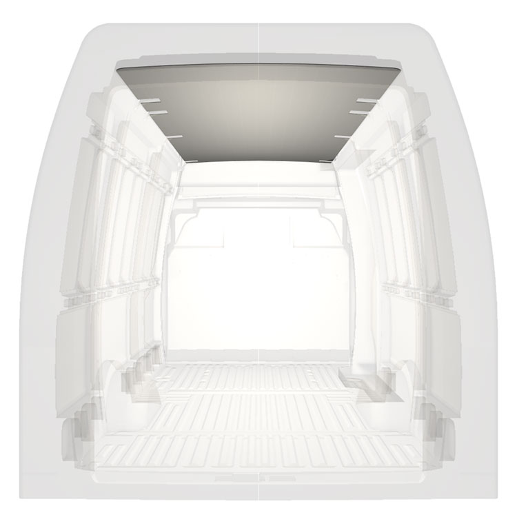 Lett kledning til taket i Iveco Daily. Takkledningen gir en lys og profesjonell utførelse innvendig og et trivelig arbeidsmiljø.