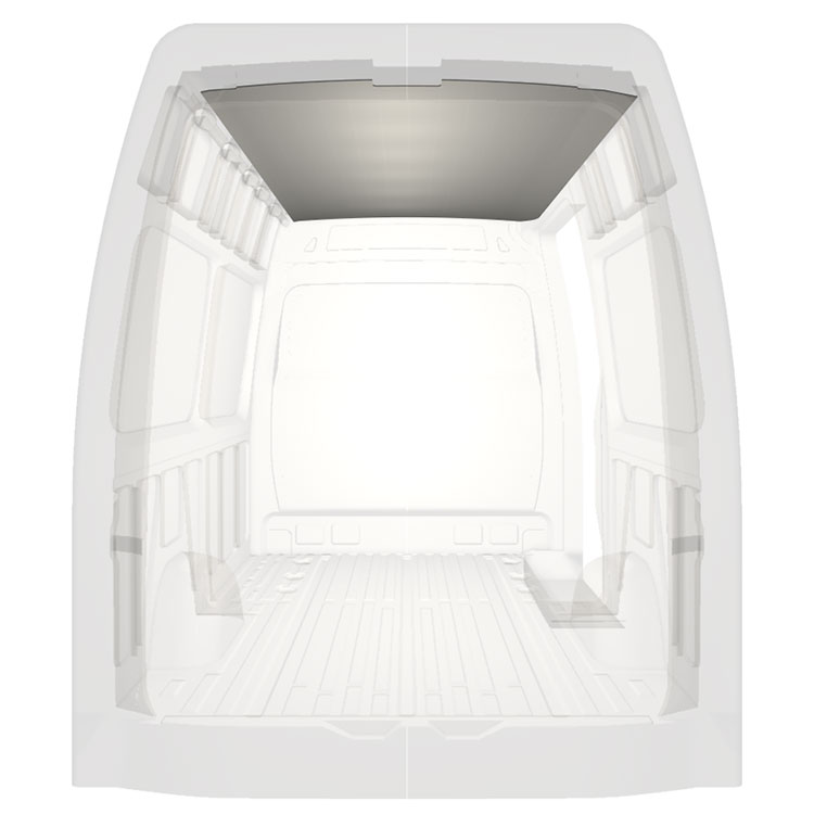 Lett kledning til taket i Mercedes Sprinter. Takkledningen gir en lys og profesjonell utførelse innvendig og et trivelig arbeidsmiljø.