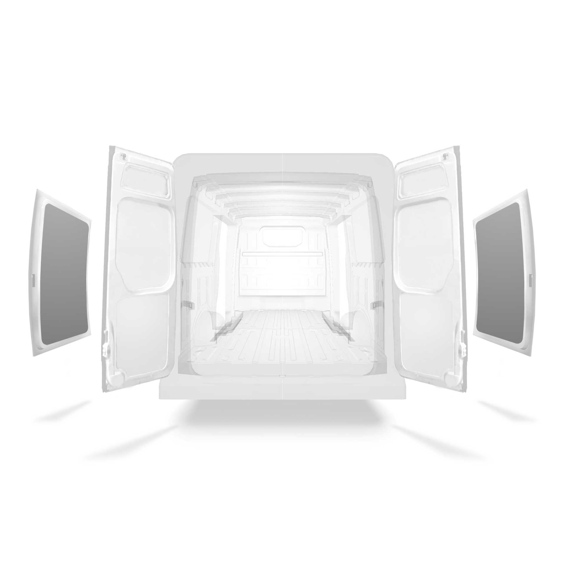 Lett, hel kledning til sidedøren i Volkswagen Transporter T6 Volkswagen Crafter / MAN TGE med doble sidedører. Kledningen beskytter innsiden av døren og er enkel å tørke av.