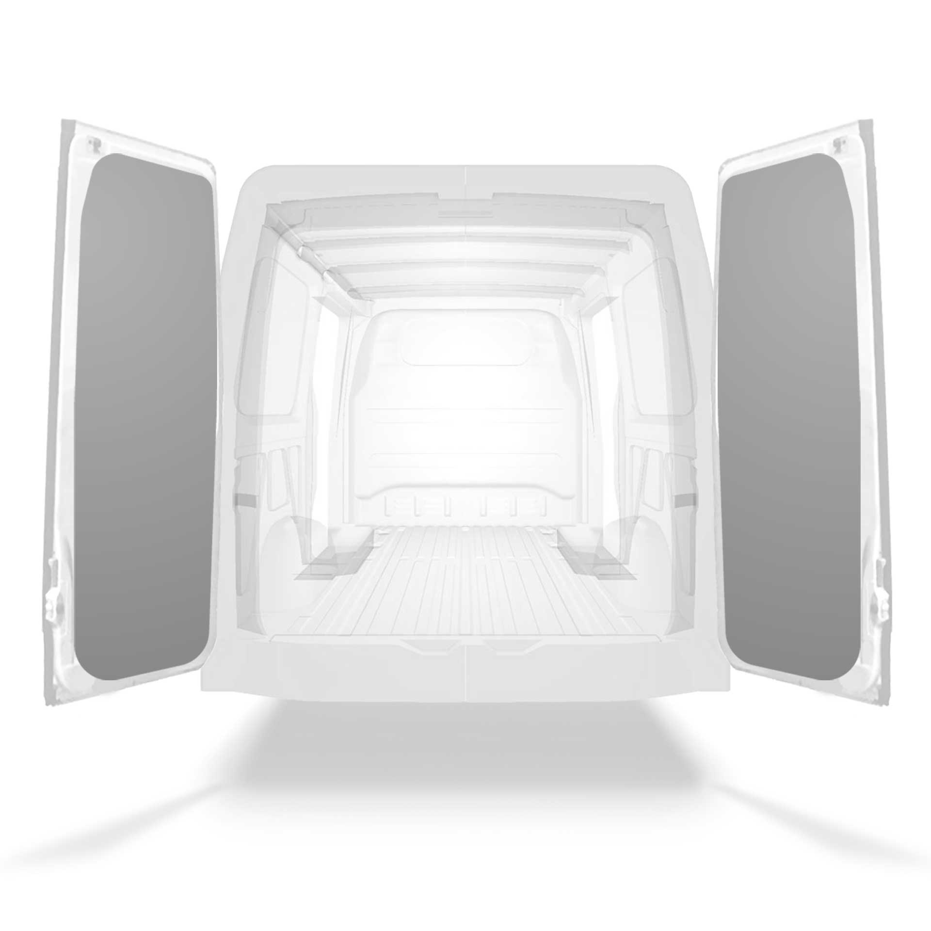 Denne prefabrikkerte bakdørkledningen til varebil er designet for å dekke hele kjøretøyets dobbeltdører.