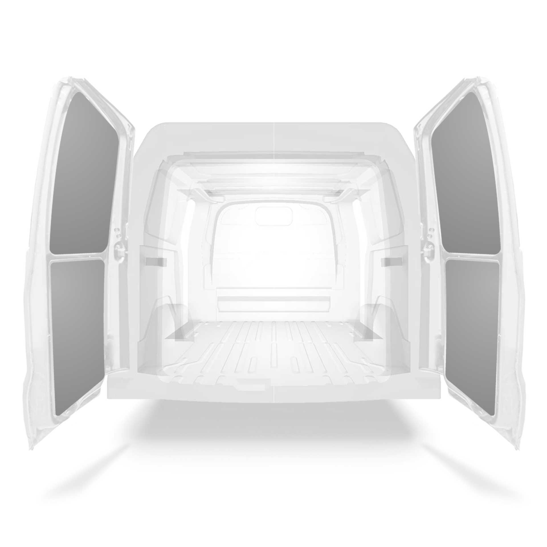 Lett panelkledning til bakdør i Ford Transit Custom med dobbeltdør. Dørkledningen har en design som gir en profesjonell utførelse på innsiden, den beskytter varebilen og er enkel å tørke av.