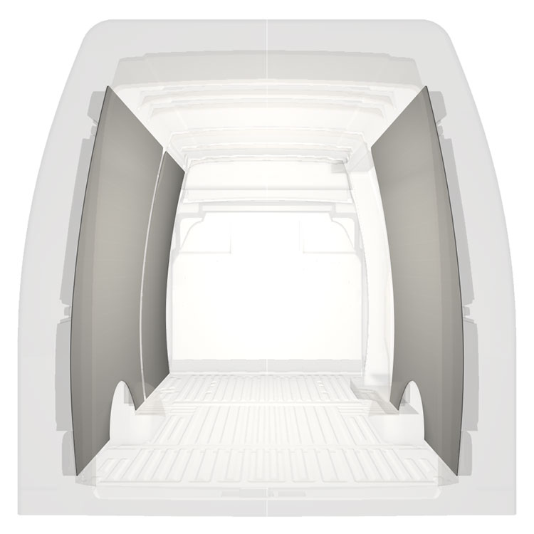 Lett full kledning til innerveggene i Iveco Daily med høyre sidedør.Kledningen gir et lyst og trivelig arbeidsmiljø, og er enkel å tørke av.
