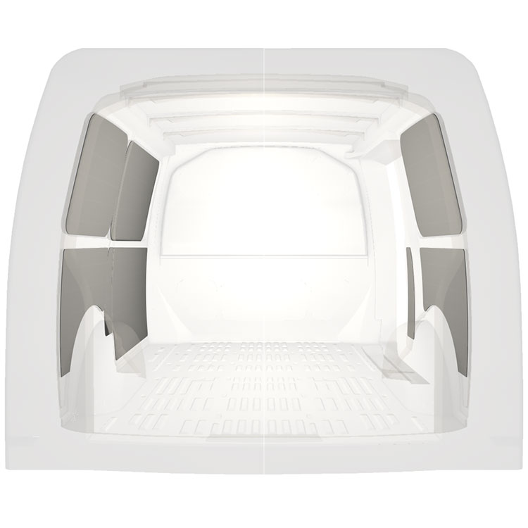 For å optimalisere vekten passer den prefabrikkerte varebilkledningen bare i rommet mellom bjelkene i kjøretøyet. På den måten er de ikke i veien og gir maksimalt med plass.