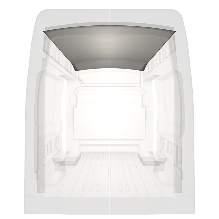 Lett kledning til taket i Ford Transit. Takkledningen gir en lys og profesjonell utførelse innvendig og et trivelig arbeidsmiljø.