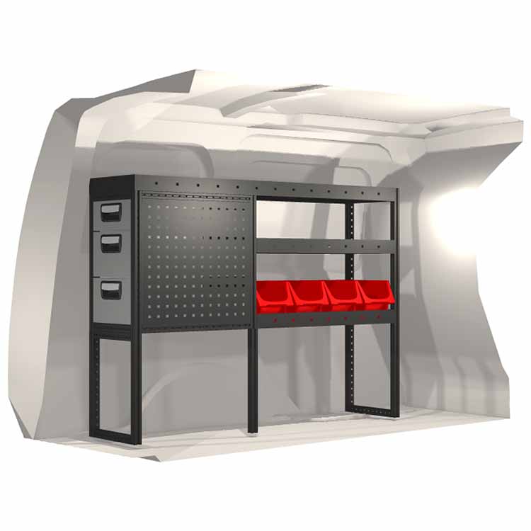 Innredningene er konstruert slik at de passer inn i bilene og tar hensyn til funksjon og sikkerhet. De er utviklet for profesjonelt bruk og fleksibiliteten gjør at den kan tilpasses alle yrkesgrupper. Hyller er utstyrt med gummimatter og skuffene har skumplastinnlegg. Monteringsmateriell er inkludert.