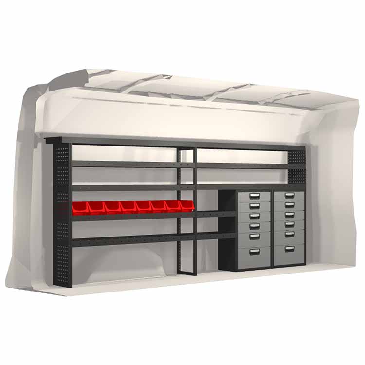 Innredningene er konstruert slik at de passer inn i bilene og tar hensyn til funksjon og sikkerhet. De er utviklet for profesjonelt bruk og fleksibiliteten gjør at den kan tilpasses alle yrkesgrupper. Hyller er utstyrt med gummimatter og skuffene har skumplastinnlegg. Monteringsmateriell er inkludert.