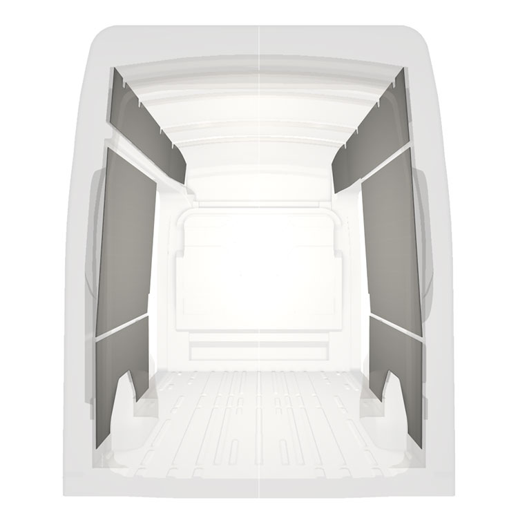 For å optimalisere vekten passer den prefabrikkerte varebilkledningen bare i rommet mellom bjelkene i kjøretøyet. På den måten er de ikke i veien og gir maksimalt med plass.