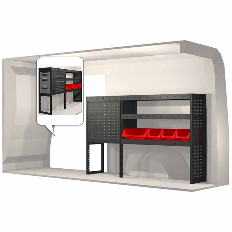Innredningene er konstruert slik at de passer inn i bilene og tar hensyn til funksjon og sikkerhet. De er utviklet for profesjonelt bruk og fleksibiliteten gjør at den kan tilpasses alle yrkesgrupper. Hyller er utstyrt med gummimatter og skuffene har skumplastinnlegg. Monteringsmateriell er inkludert.