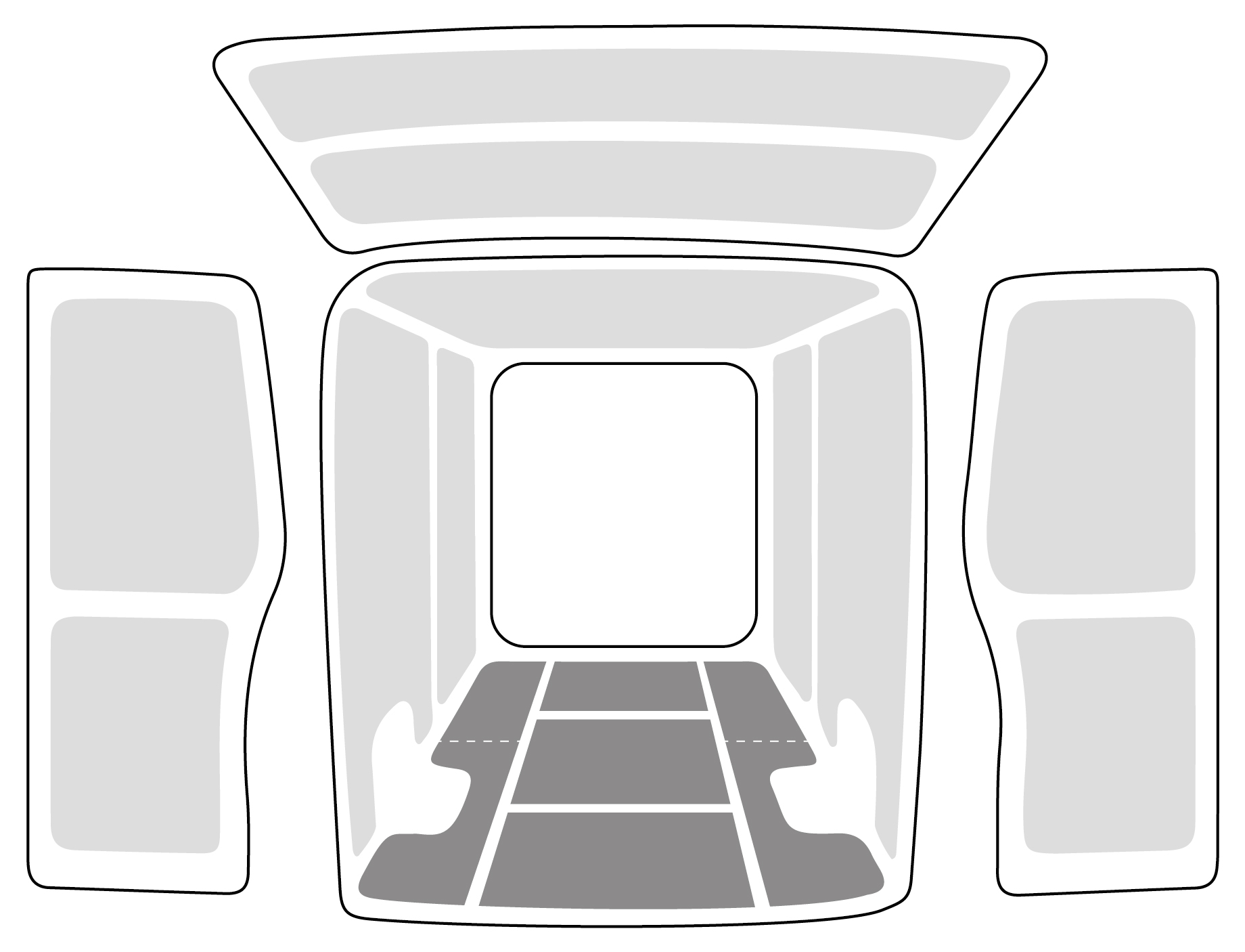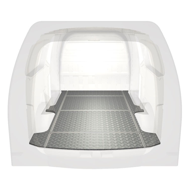 Lett og robust varebilgulv med tverrgående skinner til Hyundai H1 med sklisikker tråplate i aluminium og lastskinner (langsgående og tverrgående) for rask og sikker installasjon av hyllesystemer og tilbehør.