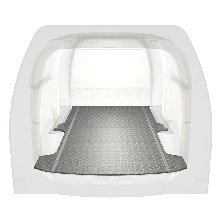 Lett og robust ekstra langt gulv til Hyundai H1 med sklisikker tråplate i aluminium og lastskinner (langsgående) for rask og sikker installasjon av hyllesystemer og annet tilbehør.