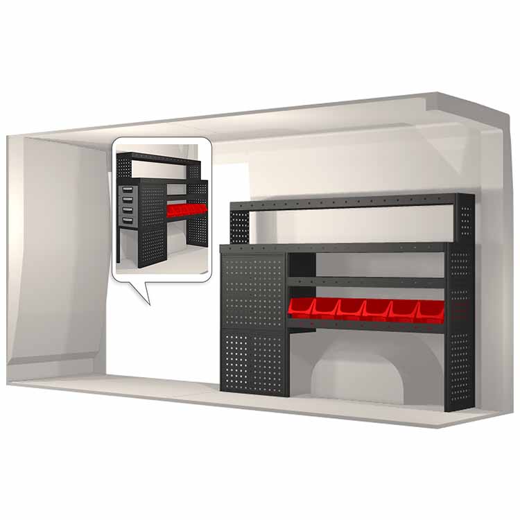 Innredningene er konstruert slik at de passer inn i bilene og tar hensyn til funksjon og sikkerhet. De er utviklet for profesjonelt bruk og fleksibiliteten gjør at den kan tilpasses alle yrkesgrupper. Hyller er utstyrt med gummimatter og skuffene har skumplastinnlegg. Monteringsmateriell er inkludert.
