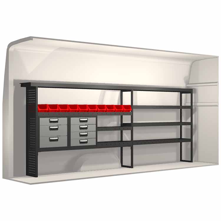 Innredningene er konstruert slik at de passer inn i bilene og tar hensyn til funksjon og sikkerhet. De er utviklet for profesjonelt bruk og fleksibiliteten gjør at den kan tilpasses alle yrkesgrupper. Hyller er utstyrt med gummimatter og skuffene har skumplastinnlegg. Monteringsmateriell er inkludert.