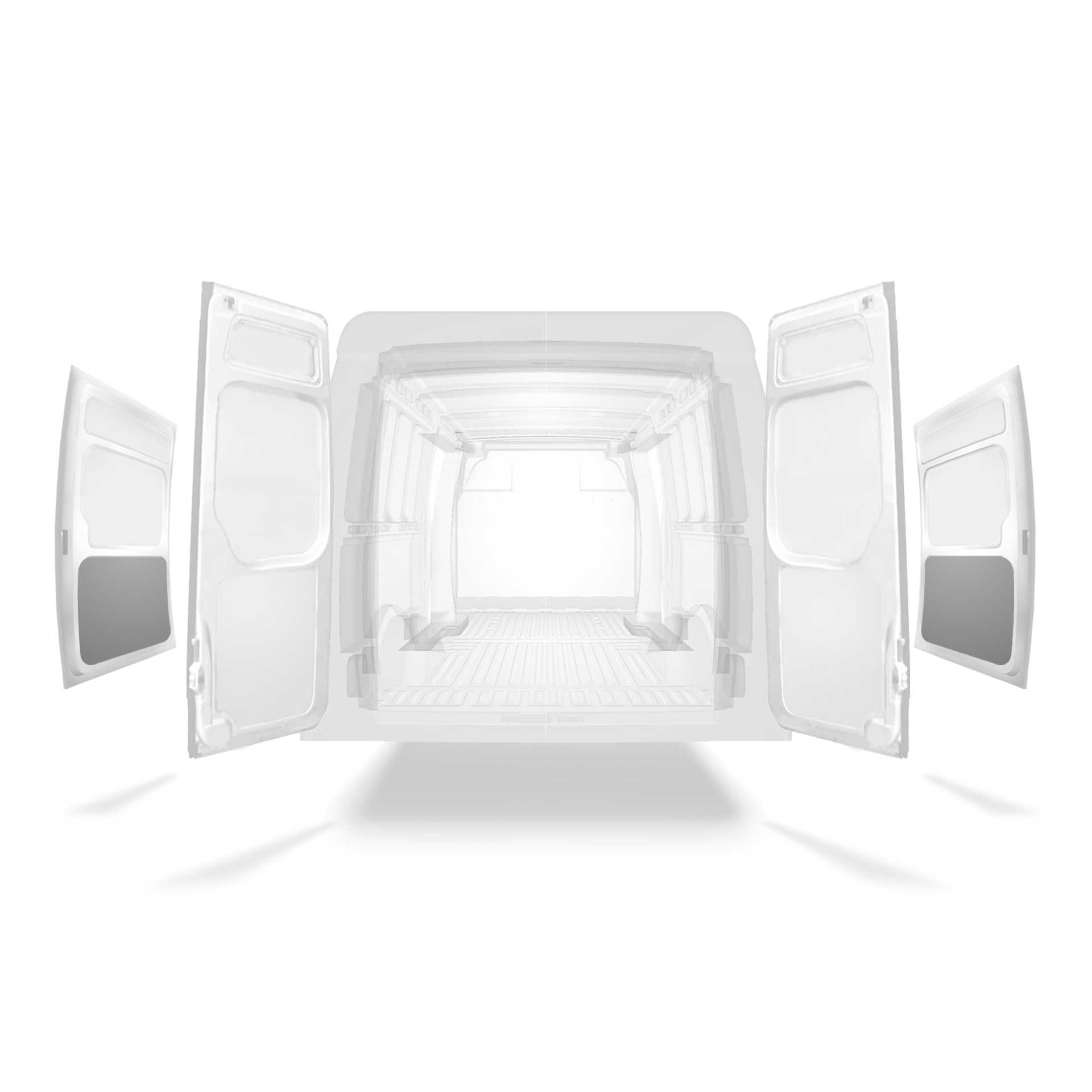 Lett kledning til nedre del av sidedør i Iveco Daily med doble sidedører. Kledningen vil gi mindre slitasje på interiøret og bidra til å sikre varebilens gjenverdi.