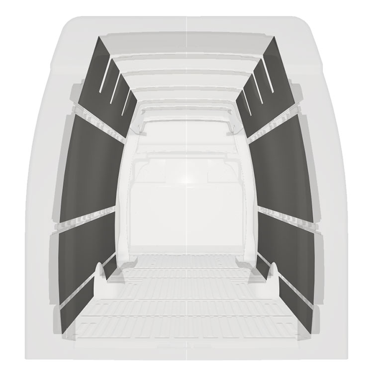 For å optimalisere vekten passer den prefabrikkerte varebilkledningen bare i rommet mellom bjelkene i kjøretøyet. På den måten er de ikke i veien og gir maksimalt med plass.