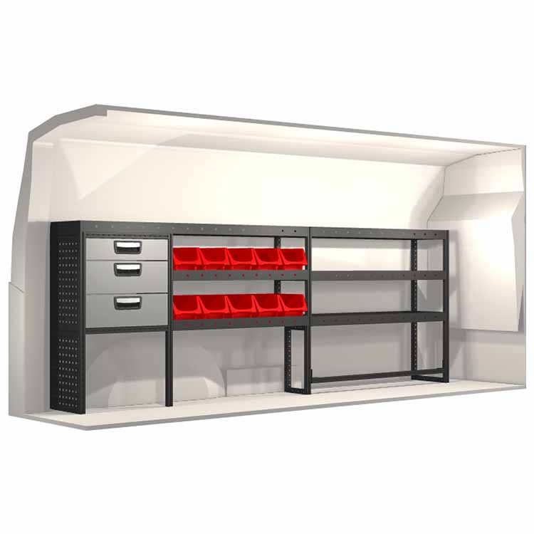 Innredningene er konstruert slik at de passer inn i bilene og tar hensyn til funksjon og sikkerhet. De er utviklet for profesjonelt bruk og fleksibiliteten gjør at den kan tilpasses alle yrkesgrupper. Hyller er utstyrt med gummimatter og skuffene har skumplastinnlegg. Monteringsmateriell er inkludert.