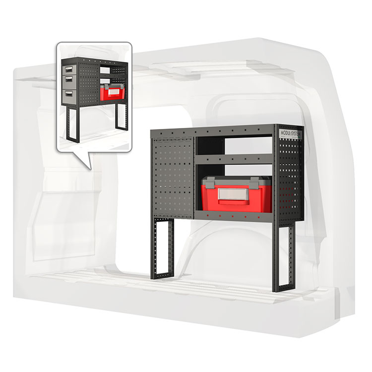 Innredningene er konstruert slik at de passer inn i bilene og tar hensyn til funksjon og sikkerhet. De er utviklet for profesjonelt bruk og fleksibiliteten gjør at den kan tilpasses alle yrkesgrupper. Hyller er utstyrt med gummimatter og skuffene har skumplastinnlegg. Monteringsmateriell er inkludert.