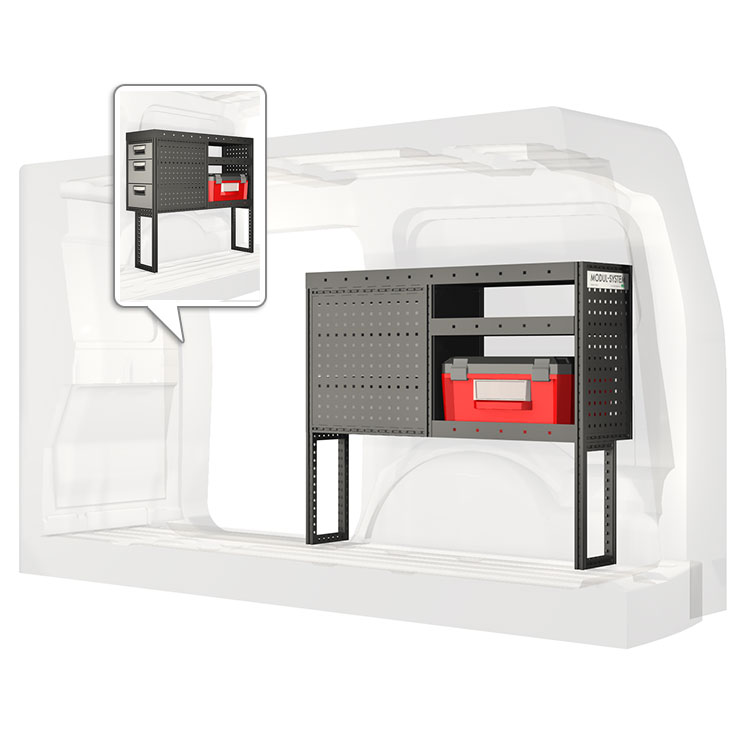 Innredningene er konstruert slik at de passer inn i bilene og tar hensyn til funksjon og sikkerhet. De er utviklet for profesjonelt bruk og fleksibiliteten gjør at den kan tilpasses alle yrkesgrupper. Hyller er utstyrt med gummimatter og skuffene har skumplastinnlegg. Monteringsmateriell er inkludert.